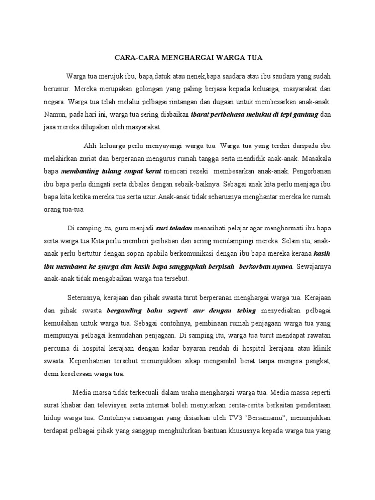 Salah satu hal penting yang perlu Moms dan. Web Contoh Karangan SPM. Terdapat anak-anak yang menghantar ibu bapa mereka ke rumah orang tua-tua.